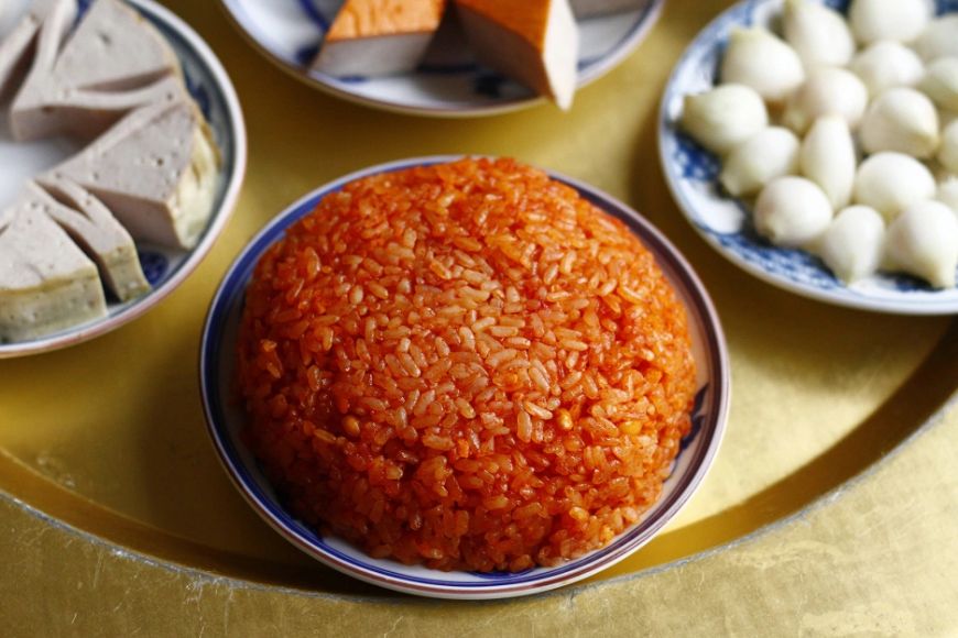 Màu đỏ tự nhiên của quả gấc tượng trưng cho sự may mắn và tài lộc. Vì thế, đĩa xôi gấc luôn được ưu tiên đặt ở vị trí trung tâm trên bàn thờ tổ tiên trong những ngày đầu xuân.