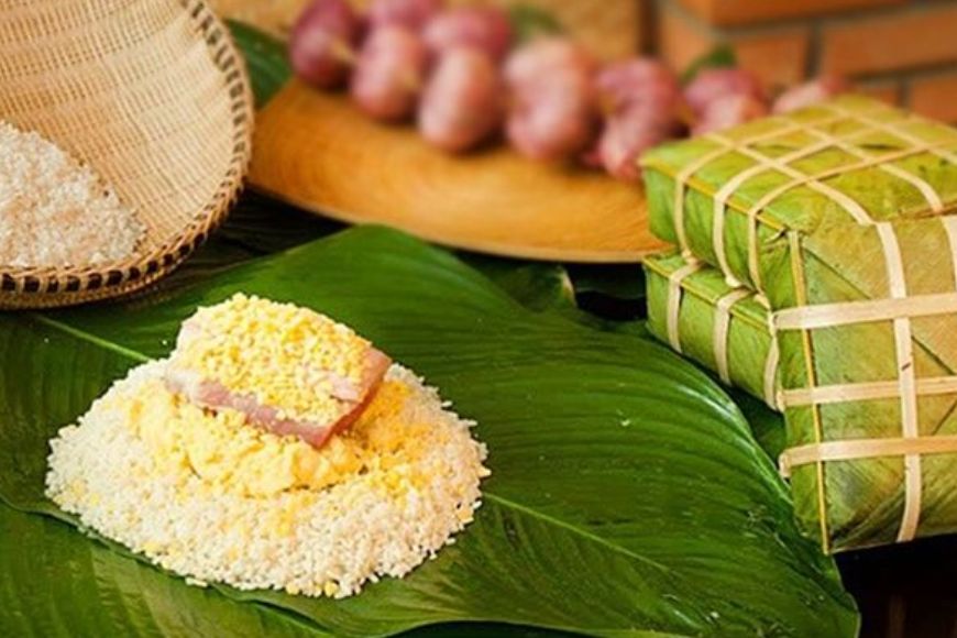 Hương vị: Sự hòa quyện giữa gạo nếp dẻo thơm, đậu xanh bùi béo và thịt mỡ đậm đà tạo nên phong vị Tết đặc trưng.
