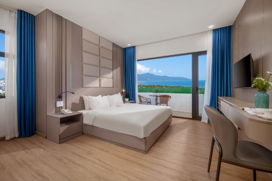 Mỗi căn phòng đều mở ra tầm nhìn thoáng đãng hướng về thành phố biển Đà Nẵng. Với những phòng có view biển, bạn có thể cảm nhận vẻ đẹp của đại dương xanh ngắt ngay từ ban công hoặc khung cửa sổ - nơi ánh nắng buổi sớm nhẹ nhàng tràn vào phòng, mang đến khởi đầu ngày mới đầy năng lượng.