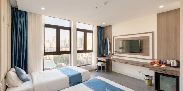 Khách sạn chỉ cách bãi biển Mỹ Khê khoảng 3 phút đi bộ và chưa đầy 4km di chuyển là đến trung tâm thành phố Đà Nẵng, gồm các điểm check-in như Cầu khóa Tình yêu Đà Nẵng (2.5km), Bảo tàng điêu khắc Chăm (3.2km), Cầu sông Hàn (3.6km). Nhờ đó, khách vừa thuận lợi tắm biển, vừa dễ dàng khám phá các điểm tham quan nổi tiếng chỉ trong thời gian ngắn di chuyển.