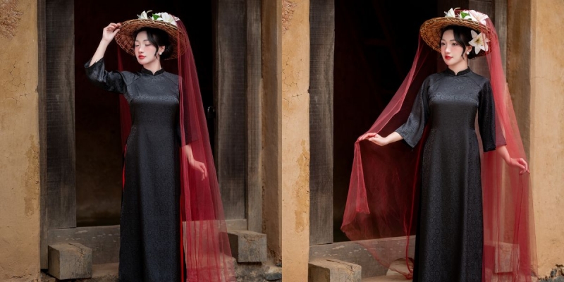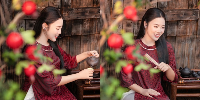 Bộ ảnh không chỉ là khoảnh khắc lưu giữ kỷ niệm, mà còn là tác phẩm nghệ thuật đậm chất cá nhân. Với phong cách phối cảnh cổ kính, hoa đào, nón lá, quạt giấy và những bộ phụ kiện đi kèm được chuẩn bị kỹ càng, tất cả đều miễn phí sử dụng, khách hàng như hóa thân thành nàng thơ trong bộ phim cổ trang Việt.