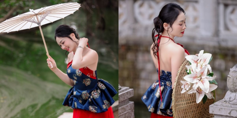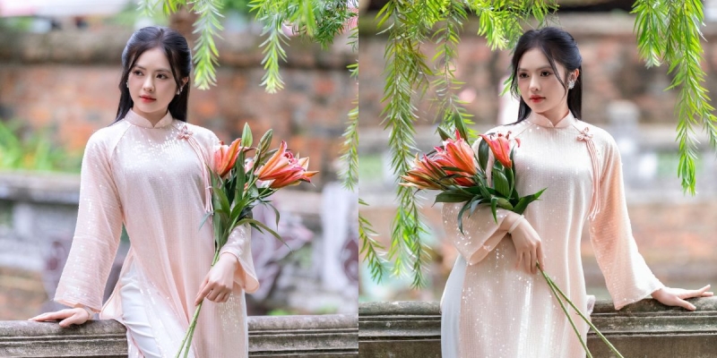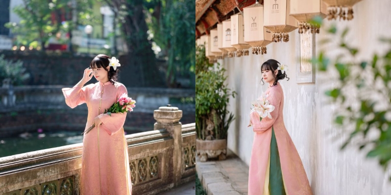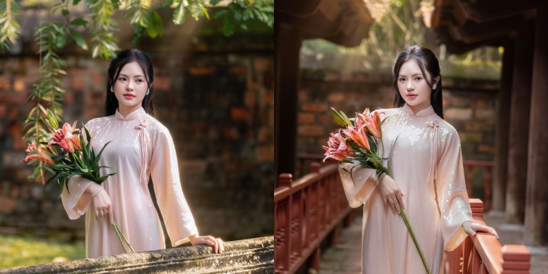 Với bối cảnh được tổ chức tại Văn Miếu hoặc đền Voi Phục, bộ ảnh của bạn sẽ mang dấu ấn riêng giữa không gian văn hóa xưa cũ và hình ảnh hiện đại đầy sáng tạo, khiến người xem không thể rời mắt.