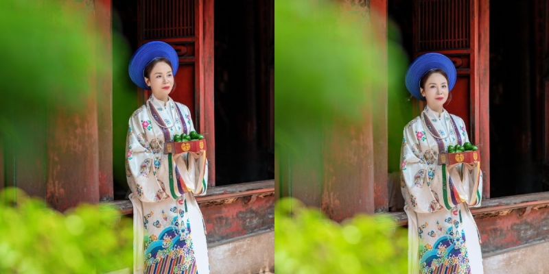 Với gói chụp ảnh cổ phục lần này, khách hàng sẽ được hóa thân giữa khung cảnh Văn Miếu thanh tịnh - mang đậm giá trị di sản nhiều thế kỷ. Từng góc chụp cổ kính tại đây khi kết hợp cùng cổ phục, phụ kiện truyền thống sẽ tạo nên sản phẩm mang đậm chất điện ảnh, nghệ thuật hoài cổ nhưng vẫn đầy mới mẻ và cá tính.