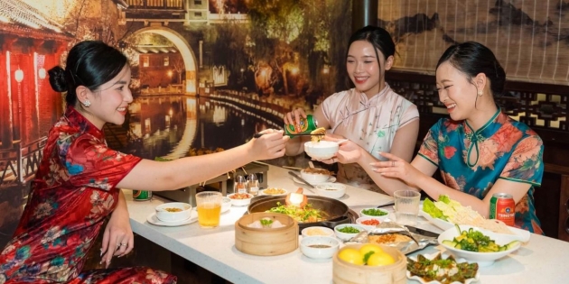 Nhà hàng phục vụ các món đặc trưng như: Canh cá dưa chua, lẩu đường nhân, lẩu cua Thất Hãn Thiên - những lựa chọn mang đậm dấu ấn hương vị đặc trưng của Cua Dang Jia.