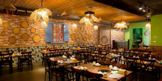 Bước chân vào Nhà hàng Phương Nam, thực khách ngay lập tức cảm nhận được bầu không khí ấm áp, thân thiện. Nội thất sử dụng nhiều tre, gỗ, nứa kết hợp ánh sáng vàng nhẹ, tái hiện rõ nét phong cách miền Tây.