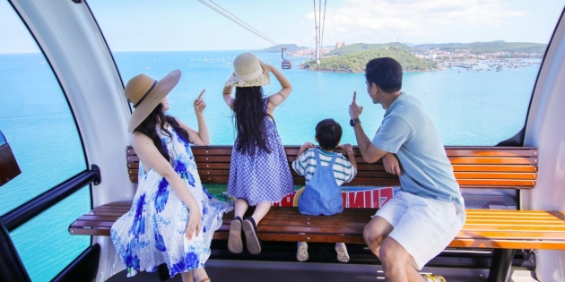 Bắt đầu hành trình của gia đình bạn bằng một chuyến cáp treo khứ hồi vô cùng đặc biệt. Tuyến cáp treo Hòn Thơm là tuyến cáp treo vượt biển dài nhất thế giới, đưa du khách vượt qua các hòn đảo nhỏ như Hòn Dừa, Hòn Rỏi, và cuối cùng dừng lại tại đảo Hòn Thơm, nơi vẻ đẹp thiên nhiên hoang sơ chào đón.